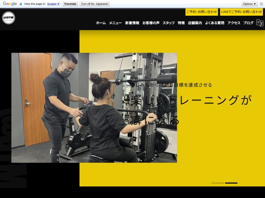 | @GYM | 最新リフォーマーマシン完備、少人数制指導 | 体験レッスン 3,000円 月会費 12,000円〜 |