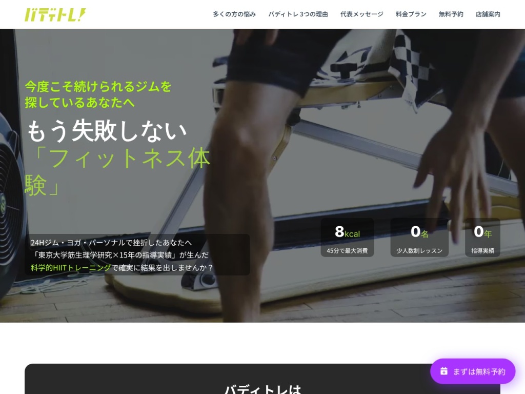 株式会社バディトレ 科学的根拠に基づいたHIITプログラム、少人数制で丁寧な指導 学生から社会人まで幅広く対応 中価格帯(コスパ良)